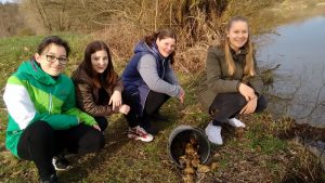 Naša škola djela već ljeta dugo na ovom projektu o amfibija i je dostala zato jur nekoliko nagradov. Mi znamo, da su žabe hasnovite živine jer žeru insekte i pauke. Redovito smo zadiljeni da sabiramo i spasimo žabe. Onda brojimo amfibije i jim odredimo spol. U kanta je odnesemo prik ceste i konačno im damo slobodu kod jezera. Za nas je sabiranje žabov vrlo zanimljivo i poučno. Doprinesemo svoj dio za zaštitu okoline odnosno za spasenje živin. Zato se rado angažiramo na ovom području!