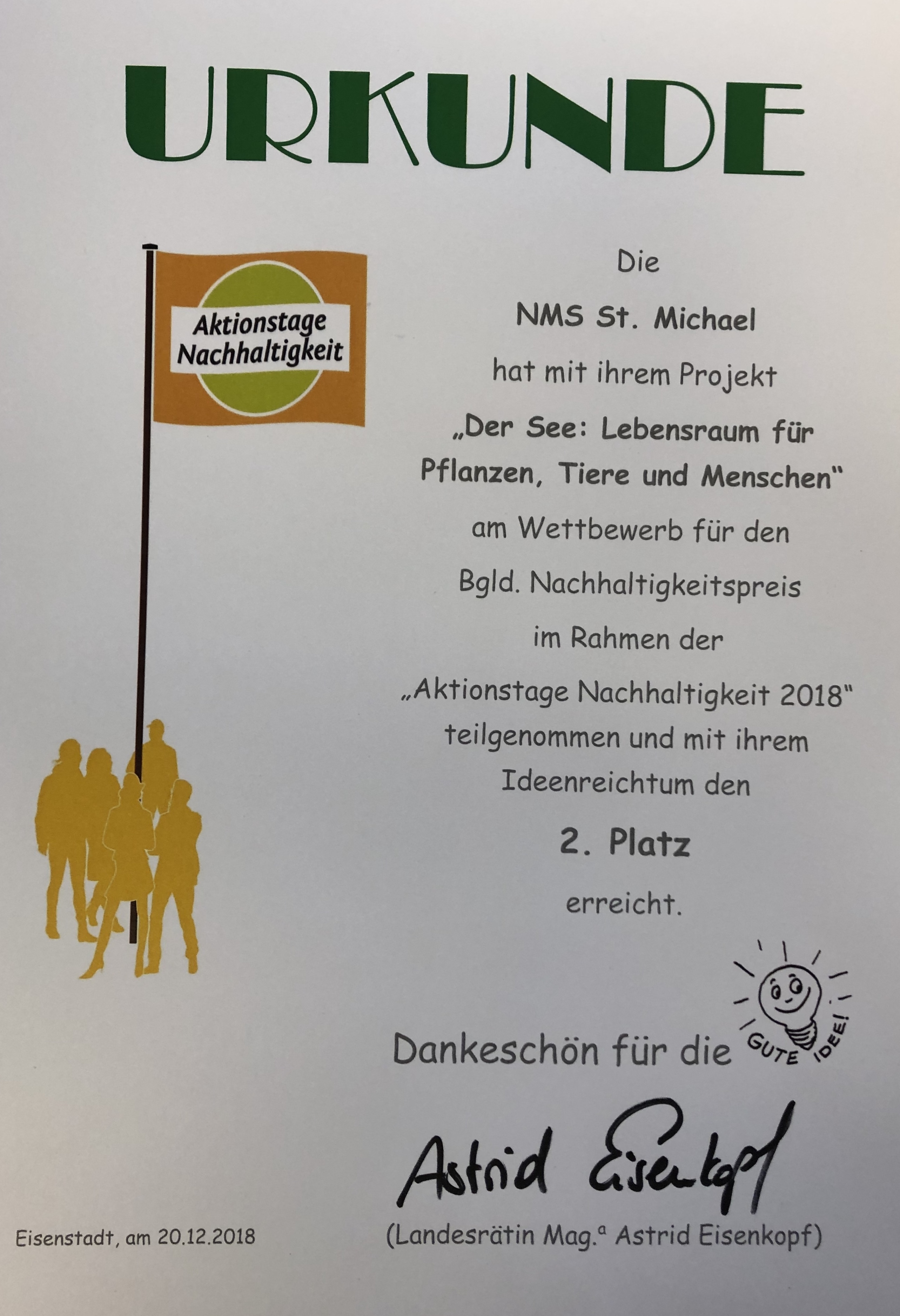 Am 20. Dezember 2018 wurden in einem Festakt im feierlichen Rahmen im Haus der Begegnung in Eisenstadt die Schülerinnen und Schüler der 2. Klassen mit dem 2. Platz ausgezeichnet.