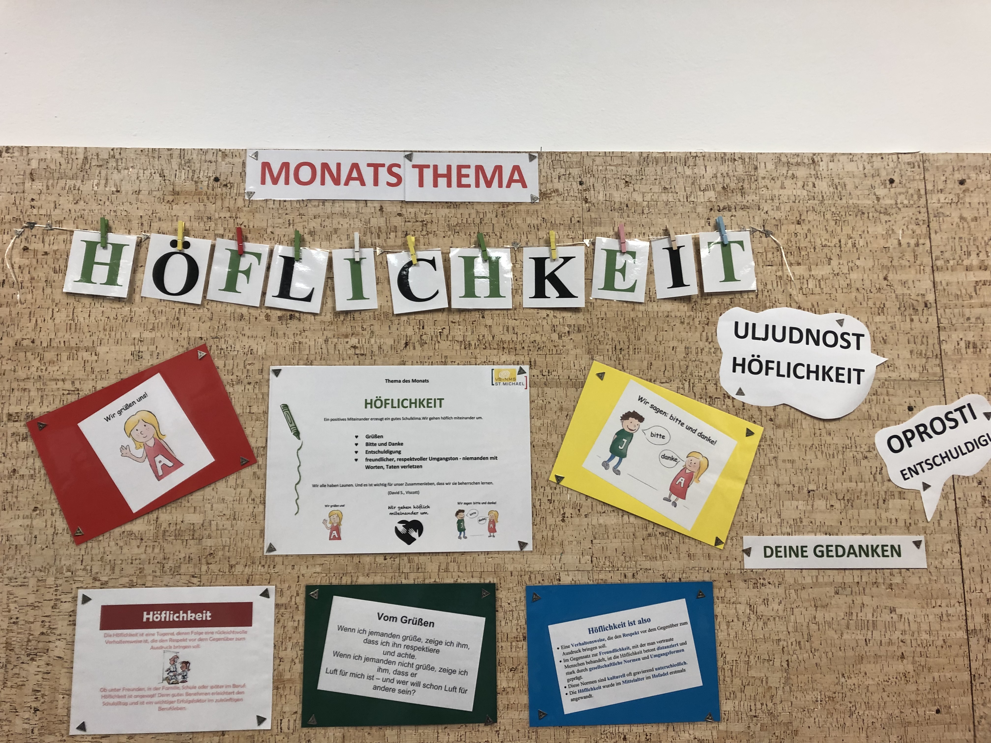 Die ersten vier gemeinsamen Wochen in der Mittelschule waren spannend und sind schnell vergangen. Neue Freundschaften wurden bereits geschlossen, an die vielen neuen Fächer und Lehrer*innen haben sich die Neuankömmlinge schon gewöhnt. Damit sich jeder in der Klasse wohlfühlt, sind Schul- und Klassenregeln sowohl in kroatischer als auch deutscher Sprache erarbeitet und gestaltet worden.