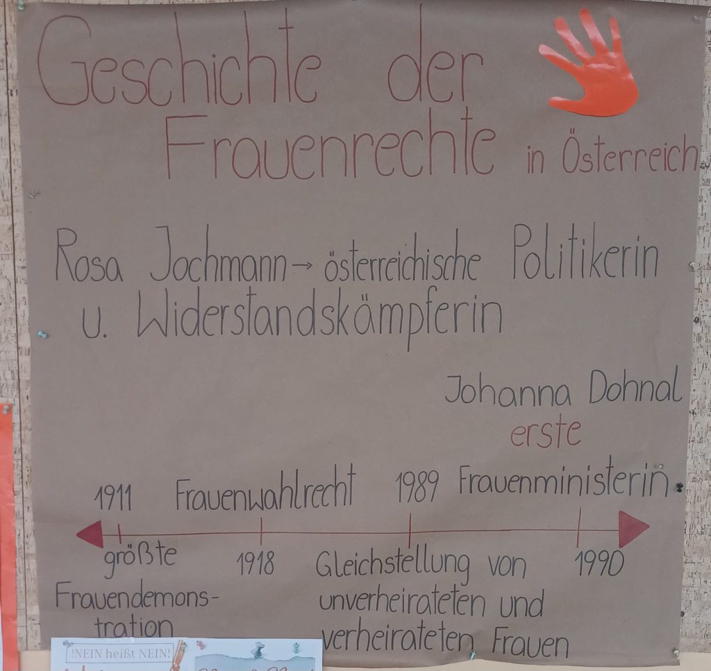 Im Rahmen der internationalen Aktion „16 Tage gegen Gewalt an Frauen“ setzten sich die SchülerInnen der 4. Klassen intensiv mit diesem wichtigen gesellschaftlichen Thema auseinander. Gemeinsam wurden unterschiedliche Aspekte von Gewalt an Frauen thematisiert, besprochen und reflektiert. Ziel des Projekts war es, Bewusstsein zu schaffen und über Möglichkeiten der Prävention sowie Unterstützung zu informieren.