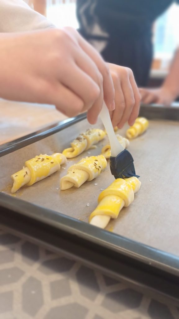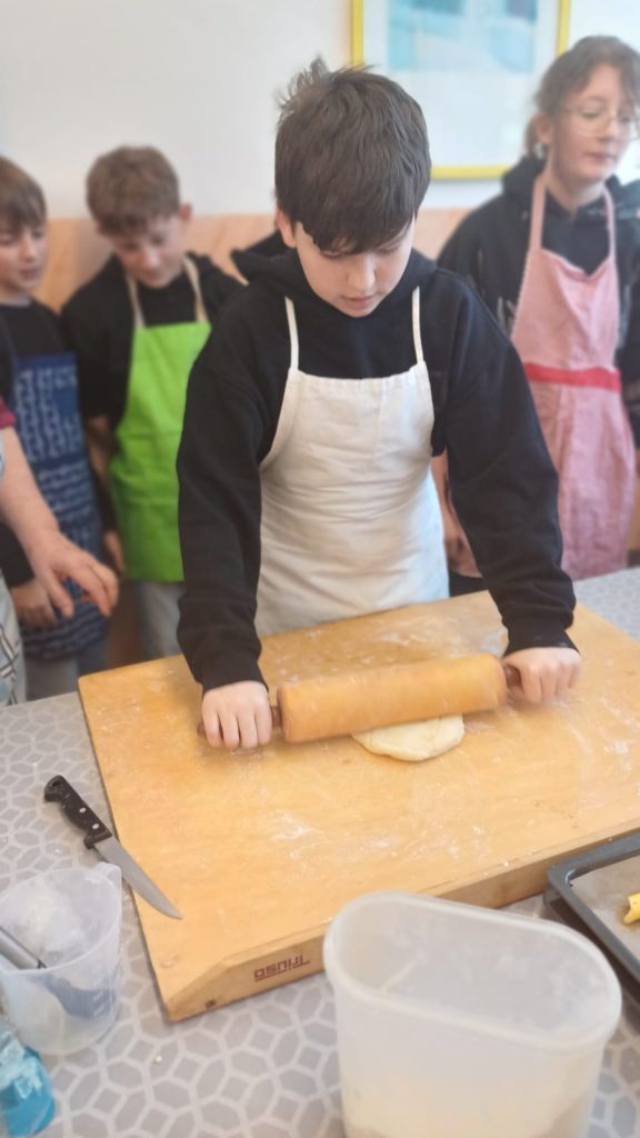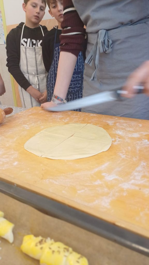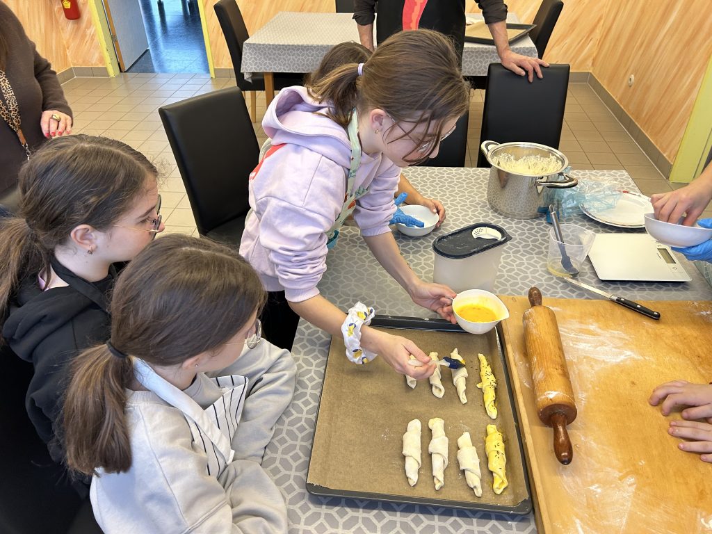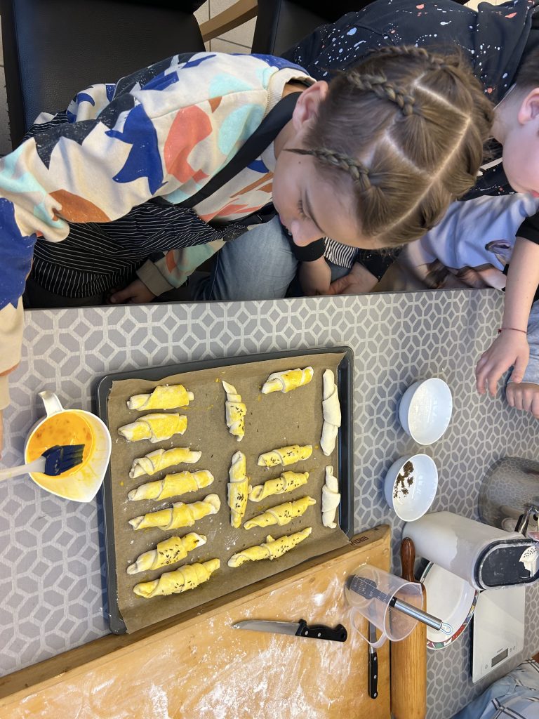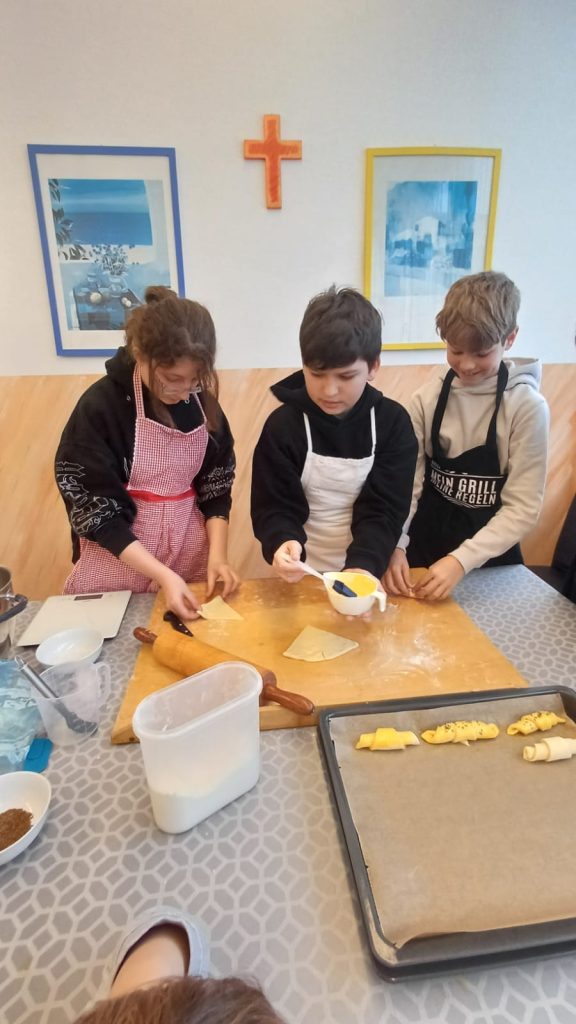 Mit großer Begeisterung backten die 2. Klassen gemeinsam mit Helene Jautz und ihrem Mann frisches Brot und knusprige Salzstangerl. Dabei lernten die Kinder nicht nur die Zutaten kennen, sondern auch, wie aus Mehl, Wasser und Hefe mit Geduld und Teamarbeit köstliche Backwaren entstehen. Mit viel Freude wurde geknetet, geformt und natürlich auch gekostet. Der Duft von frisch Gebackenem erfüllte die Küche und machte das gemeinsame Backen zu einem besonderen Erlebnis für alle Beteiligten. Wir bedanken uns bei Frau Jautz und ihrem Gatten für dieses schöne Erlebnis!