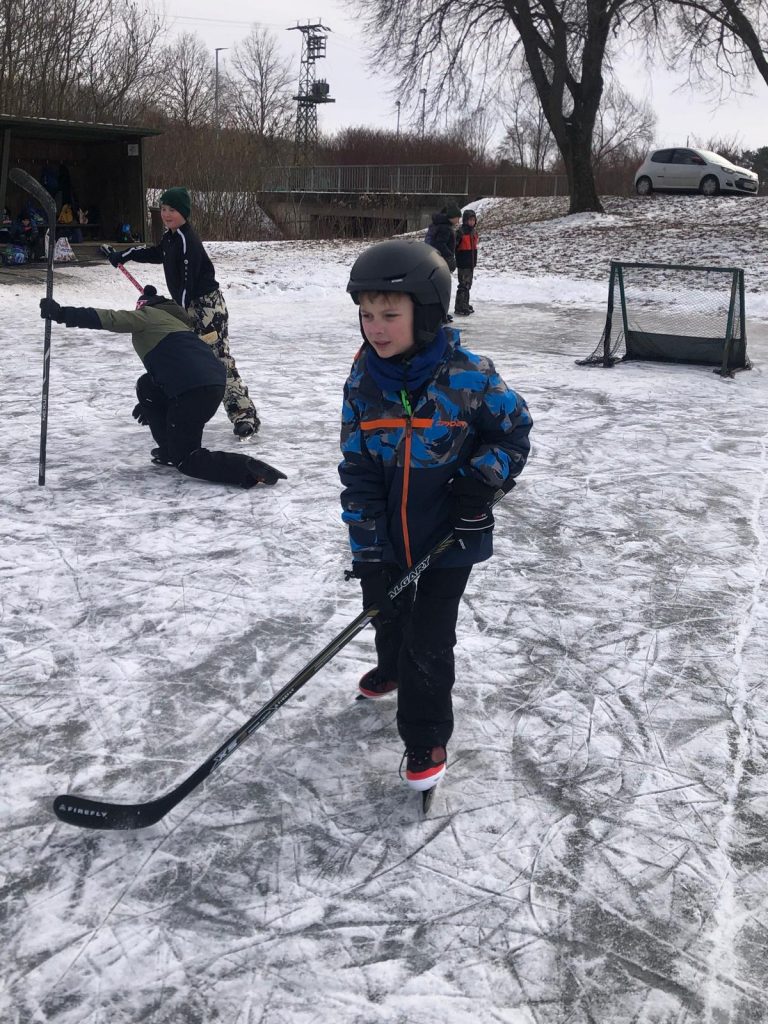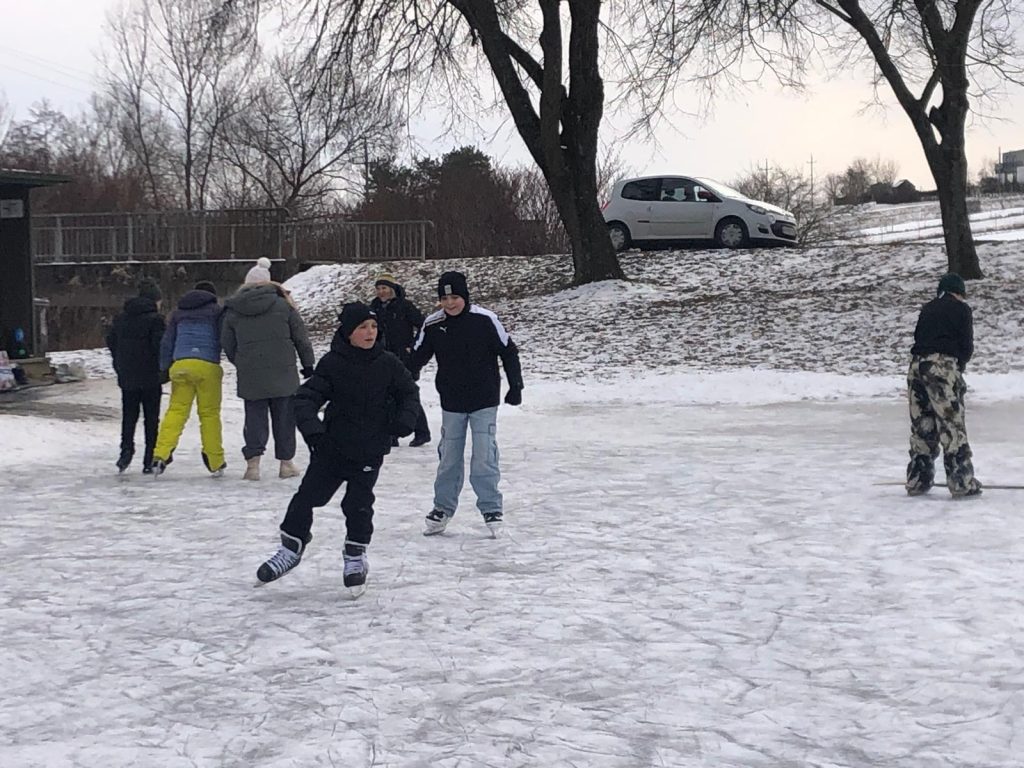 Auch auf dem Eis war einiges los: Richtig laufen, bremsen, drehen und springen will gelernt sein. Bei kleinen Spielen und beim Eishockey wurden Koordination, Geschicklichkeit und Teamgeist trainiert. Trotz Minusgraden hatten die Jugendlichen sichtlich Freude daran, den Turnunterricht einmal ganz anders zu erleben.