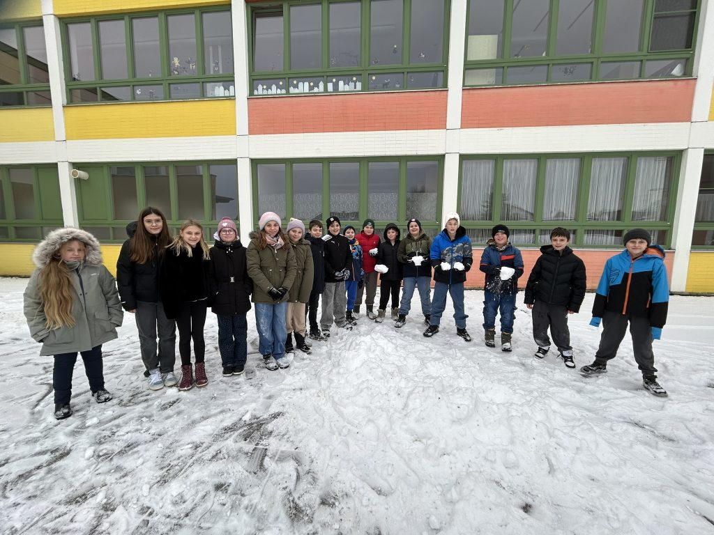 Statt des regulären Unterrichts ging es nach draußen: Mit viel Kreativität wurden Schneefiguren gebaut und kleine Kunstwerke in den Schnee gezeichnet. Gemeinsam wurde gelacht, zusammengearbeitet und die winterliche Landschaft genossen – Bewegung, Kreativität und das soziale Miteinander standen dabei im Mittelpunkt.