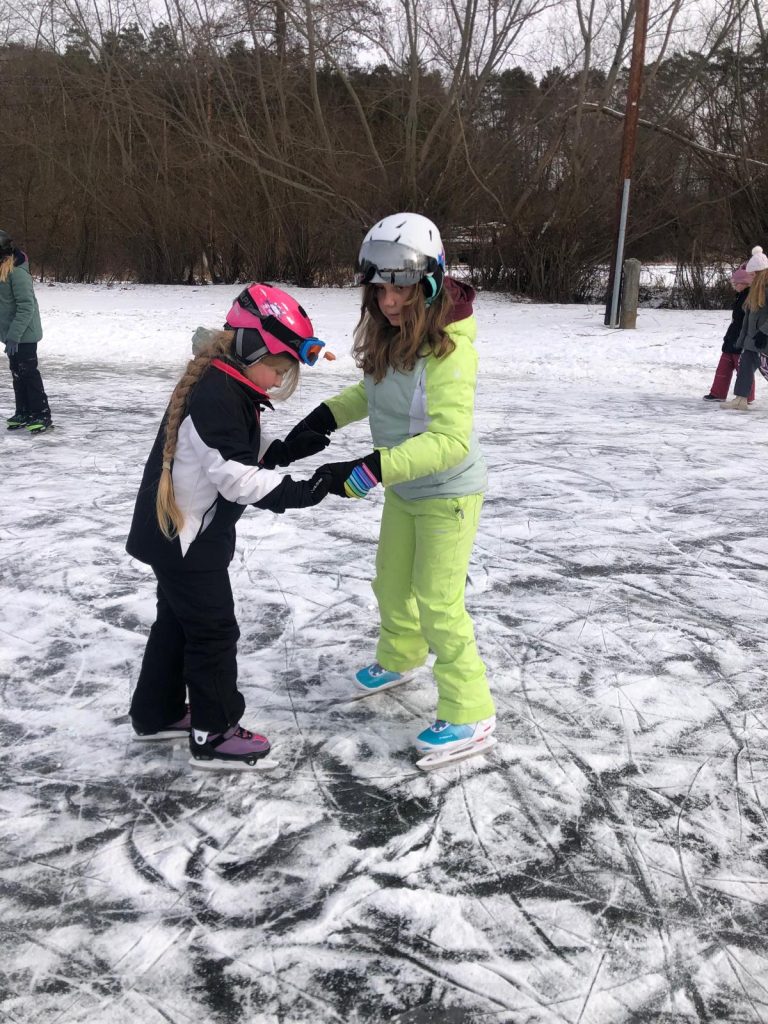 Na ledu je bilo isto veselo: klizanje, kočenje, okretanje, skakanje, male igre hokej na ledu razvijali su koordinaciju, spretnost i timski duh kod dice. Iako su temperature bile niske, imali su mladi zimski športaši mnogo veselja i uživali predmet Gibanje i šport na ov način.