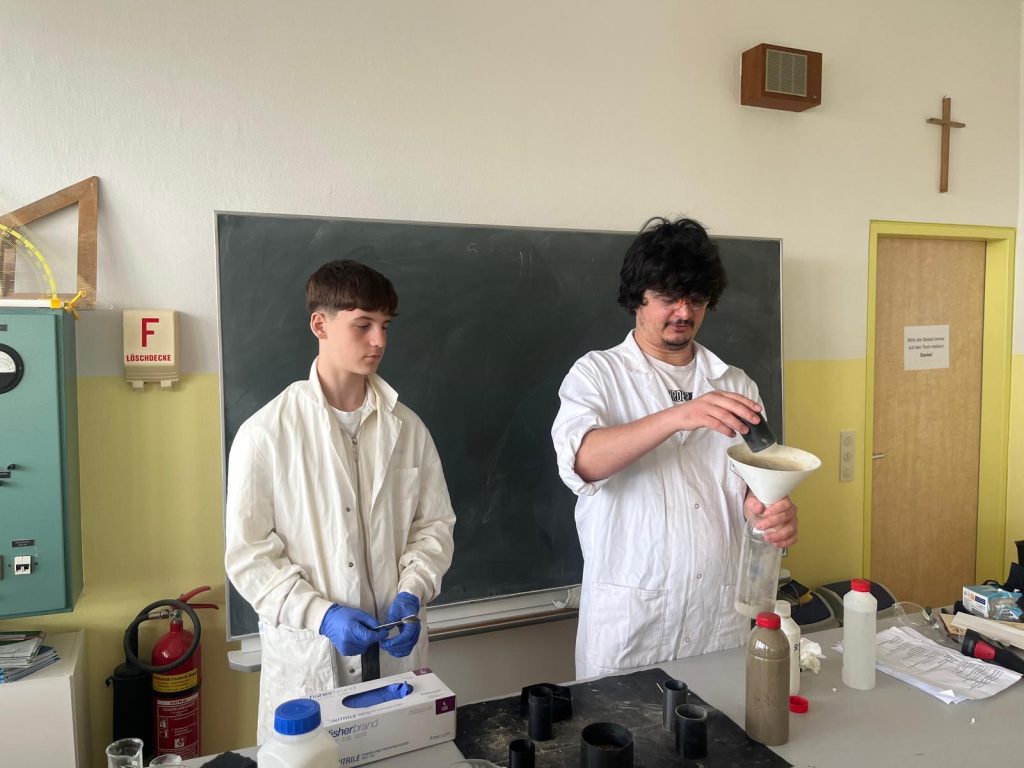 Im Rahmen unseres Projekts „Chemie on Tour“ stand die faszinierende Verbindung zwischen Chemie und Industrie im Mittelpunkt. In abwechslungsreichen Mitmach-Experimenten konnten die Schülerinnen und Schüler selbst erforschen, wie chemische Prozesse in der Industrie Anwendung finden – zum Beispiel bei der Herstellung von Beton, Kunststoffen oder Papier.