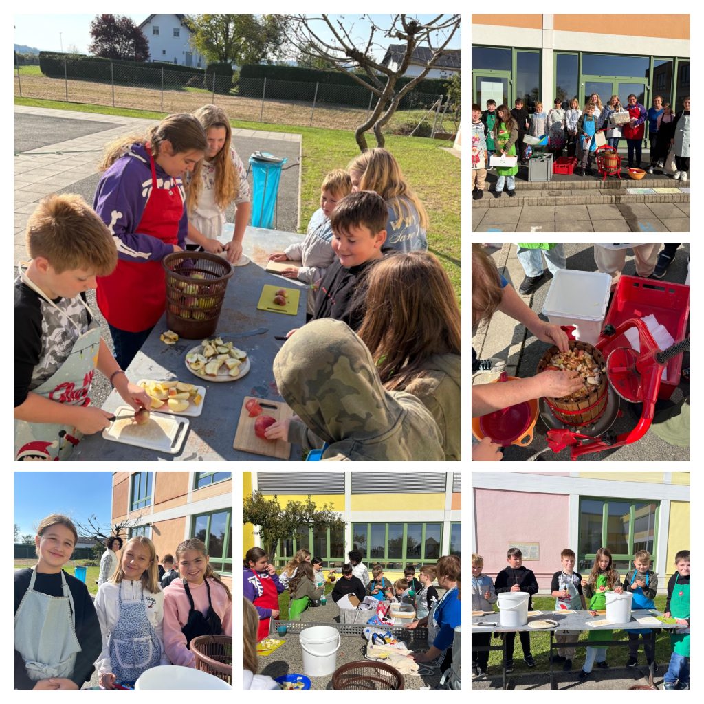 Anfang Oktober fand an der Mittelschule St. Michael wieder das traditionelle Apfelsaftpressen mit den ersten Klassen statt. Die Äpfel kamen aus den Gärten von Schüler:innen, Lehrer:innen und Eltern – frisch und ungespritzt.