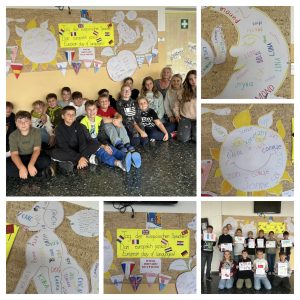 Anfang Oktober durften die Klassen 1k und 2a gemeinsam mit ihren Lehrern die leuchtend gelben Quitten pflücken. Begeistert und geschickt kletterten die Kinder auf die Leiter, ernteten das Obst behutsam und lernten mit viel Eifer und Teamgeist, wie man die Früchte richtig behandelt. Dabei sammelten sie zahlreiche Ideen, was man Leckeres daraus zubereiten kann.
