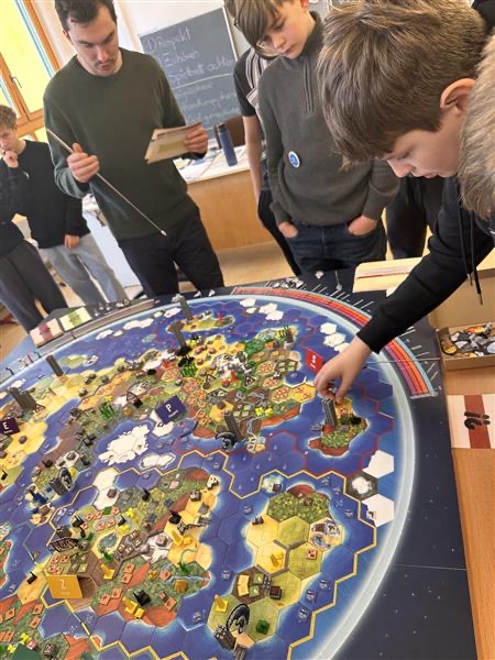 Die Jugendlichen übernahmen die Rollen von Entscheidungsträgerinnen und -trägern aus Politik, Wirtschaft und Zivilgesellschaft. Gemeinsam trafen sie richtungsweisende Beschlüsse, deren Auswirkungen unmittelbar am Spielbrett sichtbar wurden. Dank der kompetenten Begleitung durch die Spielleiter Johannes und Damian gelang es den Jugendlichen, auch komplexe Wechselwirkungen gut zu verstehen und kritisch zu reflektieren.