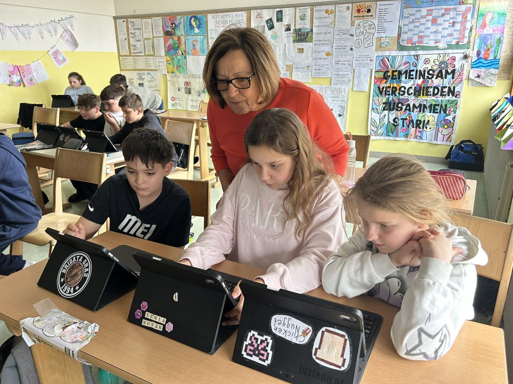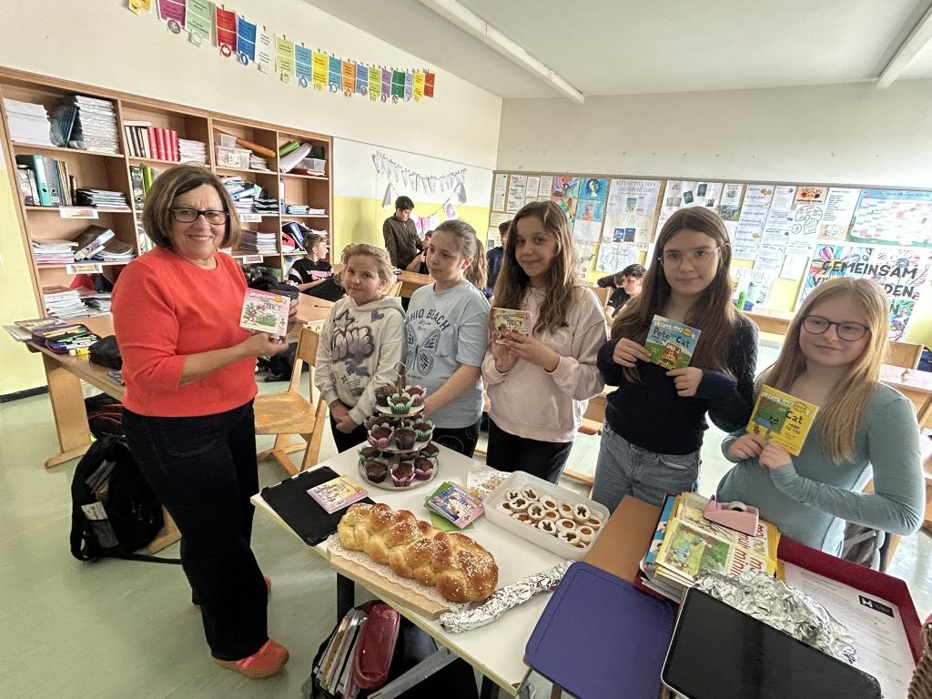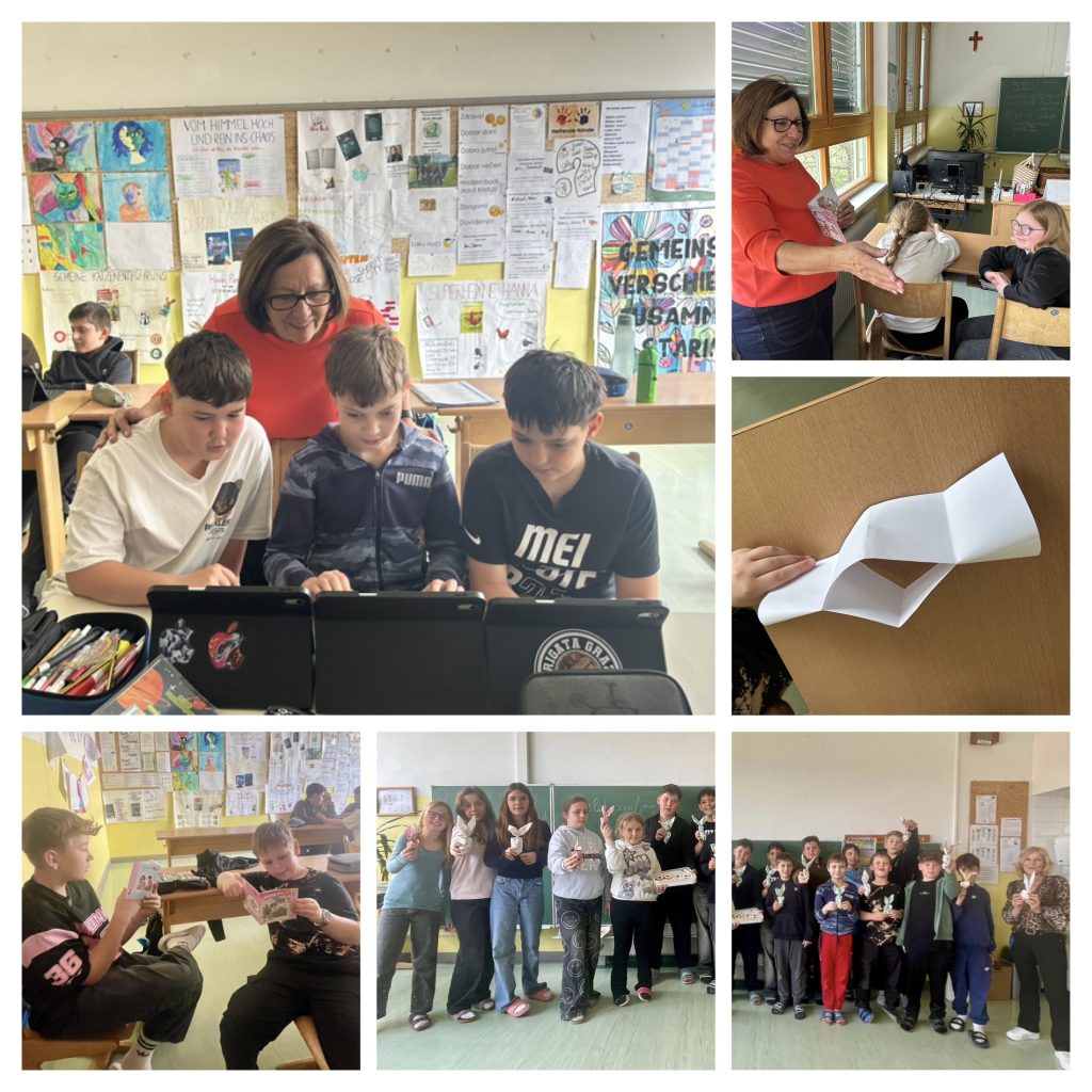 In der 1k Klasse durften wir Frau Novak, ehemalige Lehrerin und Großmutter einer Schülerin, begrüßen. Mit viel Engagement und Freude las sie gemeinsam mit den Kindern kurze Geschichten aus Büchern auf Englisch vor. Anschließend lasen die Schülerinnen und Schüler in Gruppen einander vor, stellten Fragen zu den Geschichten und setzten sich mit den Inhalten auseinander. Mit iPads und Quizlet wurden neue Wörter erarbeitet. Kreativ ging es beim Gestalten eigener Mini-Books zum Thema „Funny Bunny“ weiter.