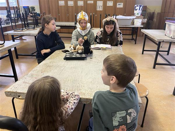 Die 1a engagierte sich am Vorlesetag und besuchte die erste und zweite Schulstufe der Volksschule. Zunächst las eine Märchenerzählerin allen Kindern eine Geschichte vor. Danach wurden die Kinder in Gruppen eingeteilt, in denen die Schülerinnen und Schüler der MS Märchen vorlasen.